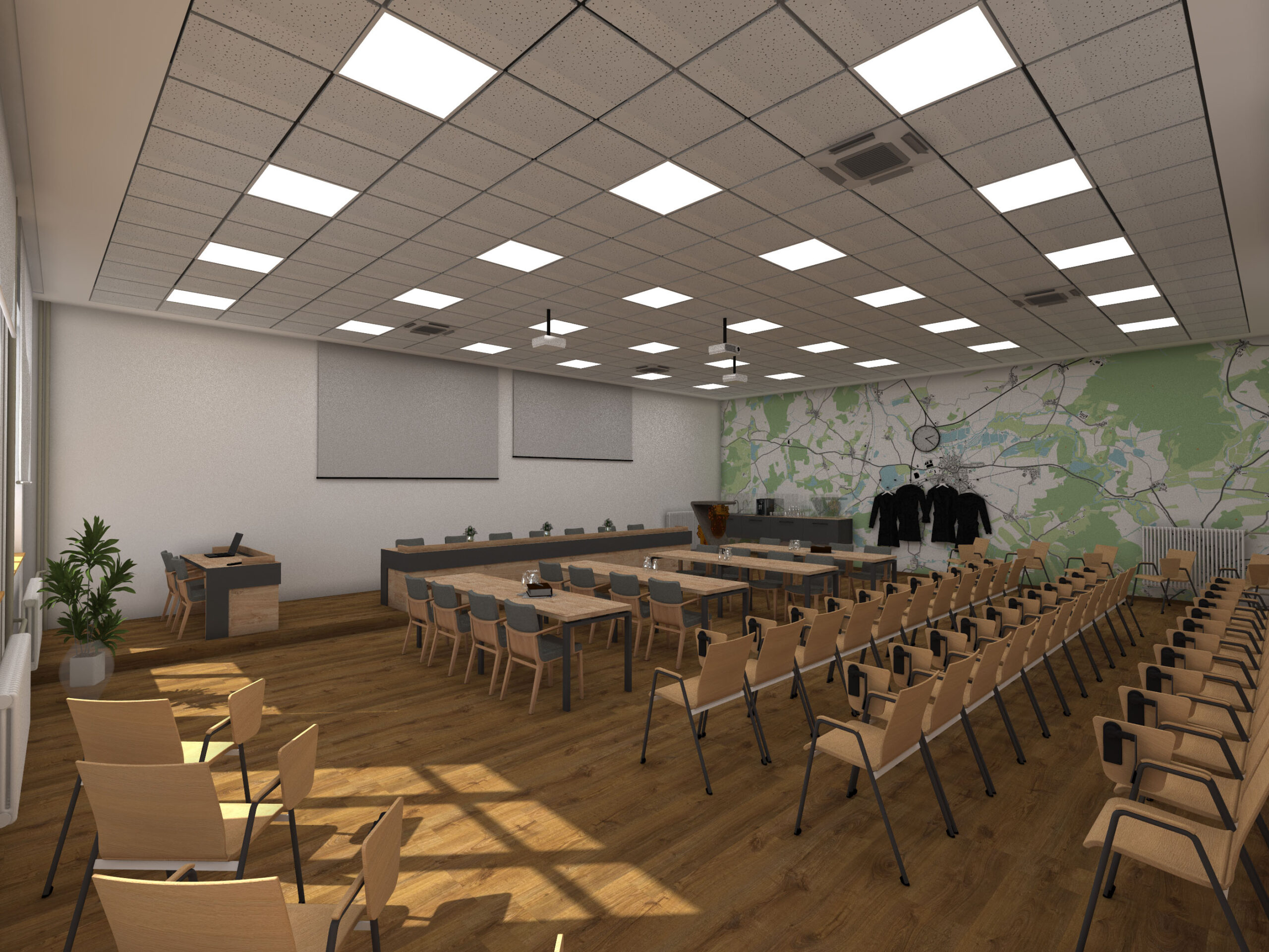 Je připraven projekt na úpravu obou zasedacích místností v budově městského úřadu. V rámci úprav dojde k instalaci nového audiovizuálního systému, zlepšení akustických parametrů a pořízení nového nábytku.